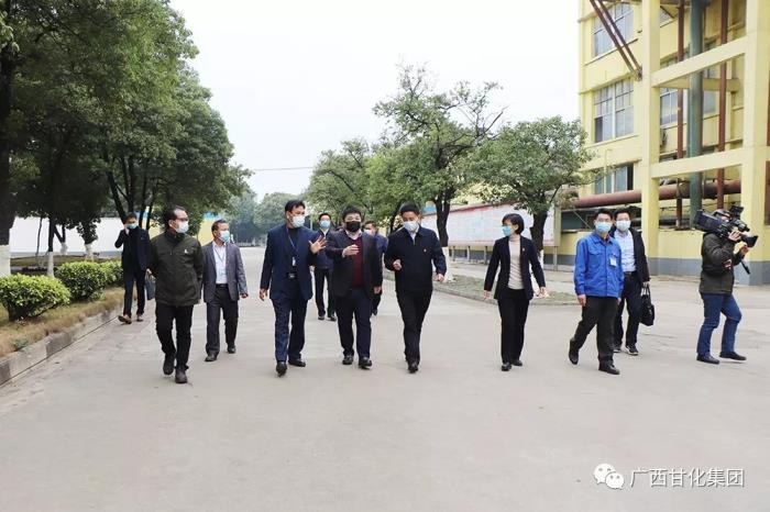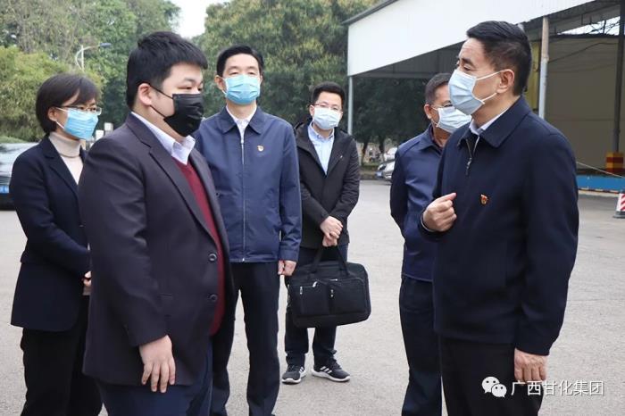 2020年2月2日,貴港市委書記李新元到廣西貴港甘化股份有限公司檢查防疫情況及酒精公司酒精發放情況。