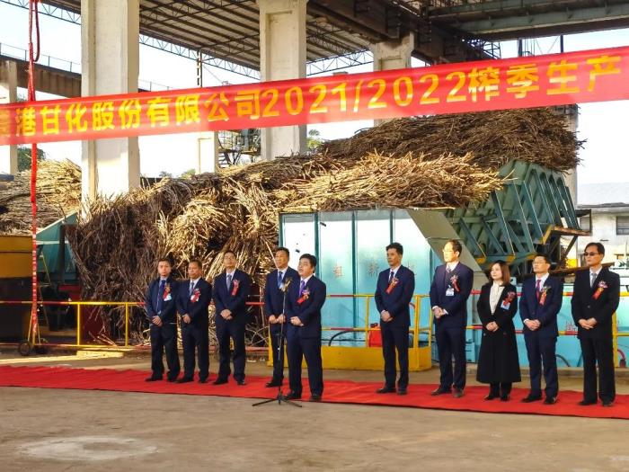 在12月3日這樣一個陽光明媚的早晨,也寓為123節(jié)節(jié)高的好日子,貴港甘化迎來了2021/2022年榨季的開榨生產(chǎn),與公司友好合作的金融單位、客戶及社會各界代表人士到場參加了開榨典禮,并一起參觀了車間生產(chǎn)線。