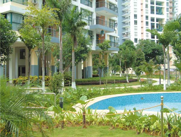 小區請久負盛名的澳大利亞Terrenr Craft景觀建筑設計公司進行景觀園藝設計。在17層的酒店式公寓,即使是在高空中,綠色依然是不可缺少的生活原色,獨創的多層次空中綠化,每三層都有一個空中花園,讓所有的住戶都能夠輕易的親近和享受綠色。